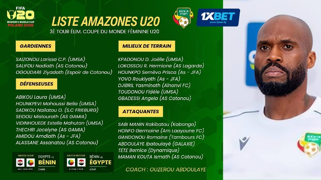 Au cours de la conférence de presse qui a eu lieu ce mercredi 28 janvier 2026, le sélectionneur des Amazones U20, Ouzérou Abdoulaye, a dévoilé la liste des 24 joueuses retenues pour la double confrontation face à l’Égypte, comptant pour le 3ᵉ tour des éliminatoires de la Coupe du Monde féminine U20.