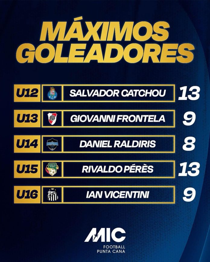 Auteur de 13 buts en 5 matchs, Rivaldo Pérès Mevognon, pensionnaire du Centre d’Excellence de Missérété, termine en tête des meilleurs buteurs dans la catégorie U15 du prestigieux tournoi MICFootball à Punta Cana.
